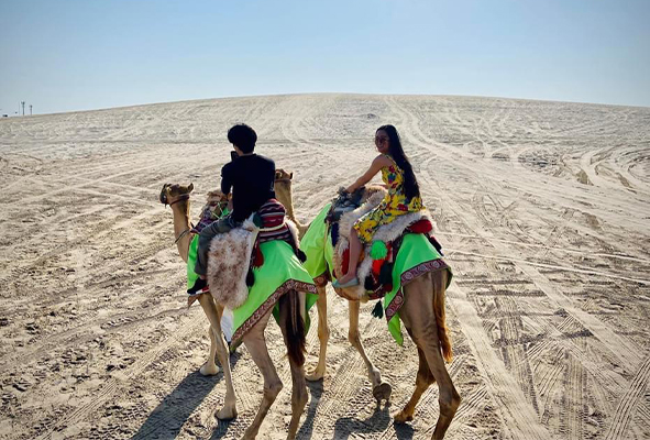 This is a 4 to 5 hours tour customized for those who loves the excitement blend with some adventure. We start around 9.00 am and reach the Southern deserts of Qatar to consume the best excitement waiting for us. Then embark on a thrilling desert safari like no other and discover the enchanting beauty of the desert landscape. Our unforgettable desert safari promises an adrenaline-pumping journey filled with exhilarating activities and mesmerizing vistas. Followed by a sandboarding challenge and majestic camelback ride.