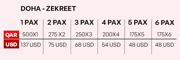 • Pick-up and drop off from anywhere in Doha by a luxury 4x4 Land Cruiser